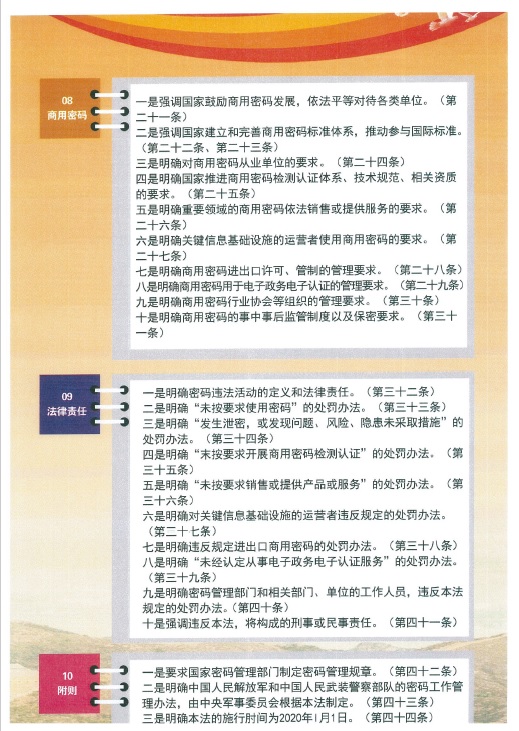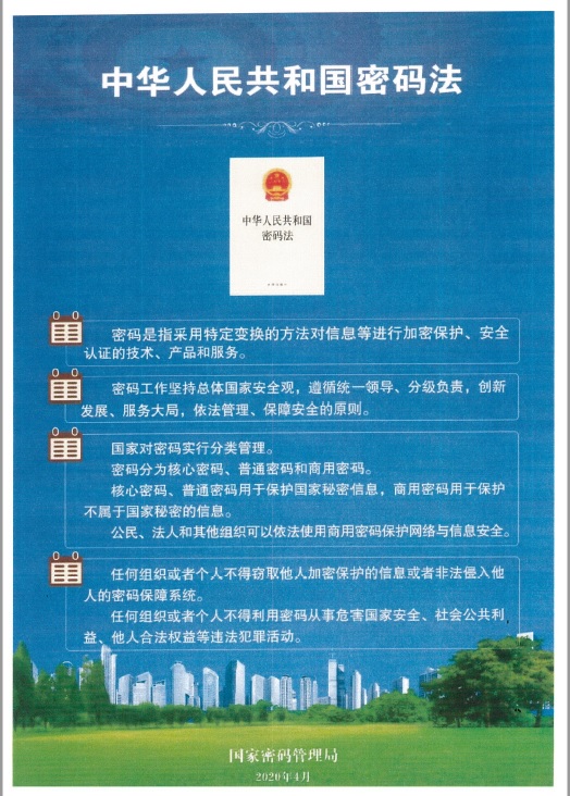 第十條 國家采取多種形式加強(qiáng)密碼安全教育,將密碼安全教育納入國民教育體系和公務(wù)員教育培訓(xùn)體系,增強(qiáng)公民、法人和其他組織的密碼安全意識。