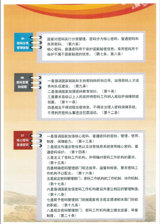 第十三條 國家加強(qiáng)核心密碼、普通密碼的科學(xué)規(guī)劃、管理和使用,加強(qiáng)制度建設(shè),完善管理措施,增強(qiáng)密碼安全保障能力。